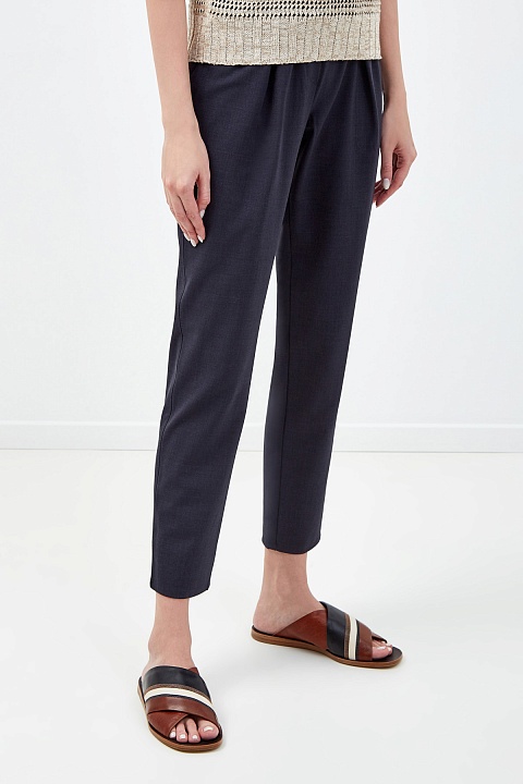 Базовые брюки из шерстяной ткани с эластичным поясом