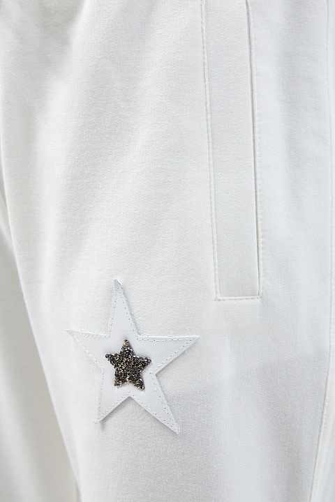 Брюки из хлопка с нашивкой из кожи и кристаллов Swarovski