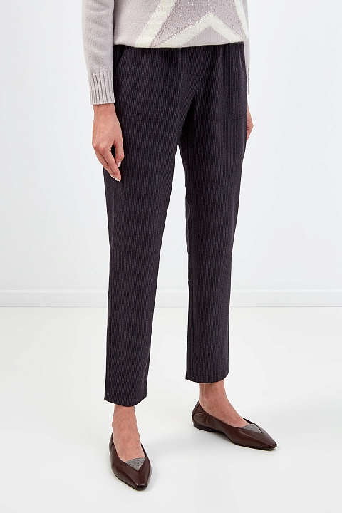 Шерстяные брюки с мерцающей трикотажной отделкой
