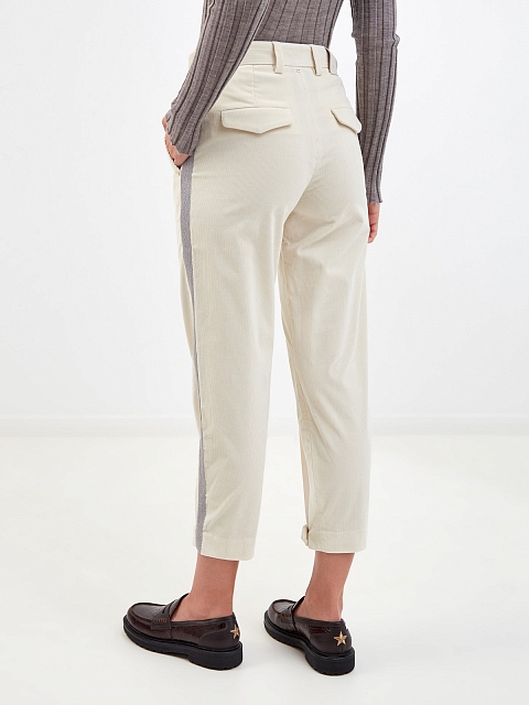 Элегантные брюки из плотного хлопкового вельвета с лампасами
