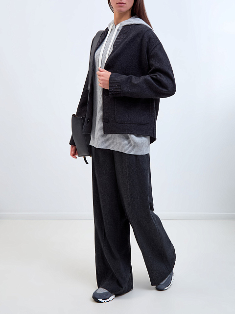Шерстяные брюки-палаццо на высокой посадке с графичными стрелками