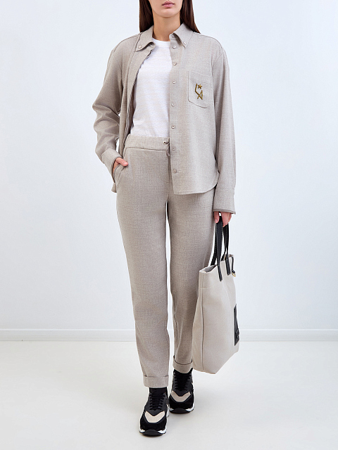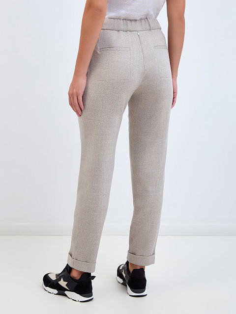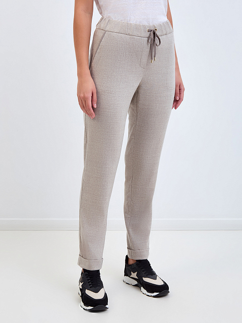 Брюки в стиле спортшик из шерсти с поясом на кулиске и отворотами