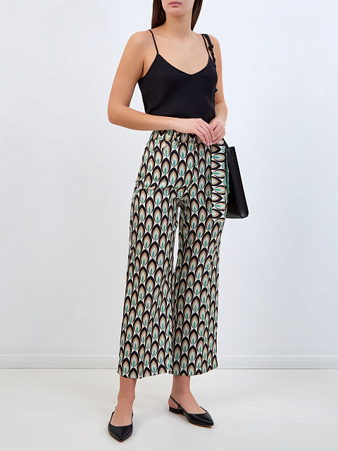 Шелковые брюки-кюлоты с принтом и двусторонним поясом