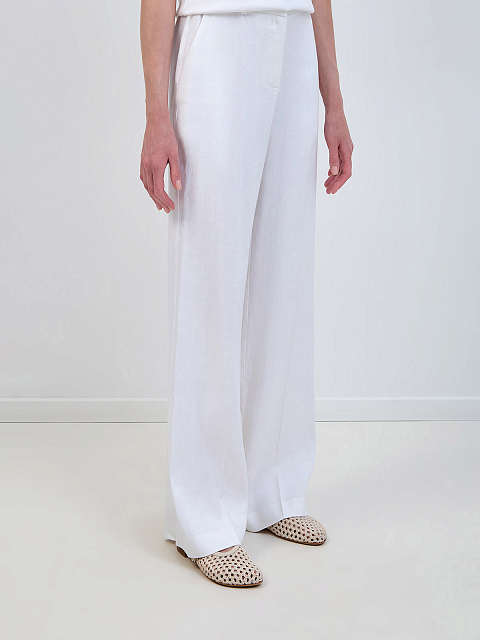 Брюки из льна и вискозы с эластичной вставкой на поясе