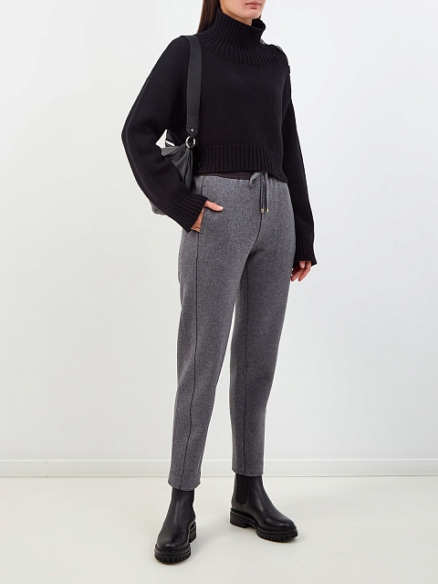 Брюки из меланжевой шерсти и кашемира с эластичным поясом