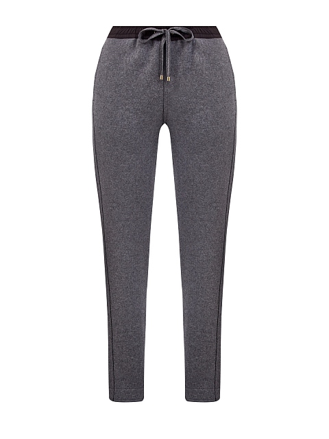 Женские брюки в меланжево-сером оттенке от Lorena Antoniazzi созданы из теплой ткани на основе шерсти мериноса. Волокна натурального кашемира придают материалу особую мягкость и прочность. Эластичный пояс на регулируемой кулиске обеспечивает комфортную посадку. Детали: прорезные карманы по бокам, накладной карман на спинке. Сделано в Италии.