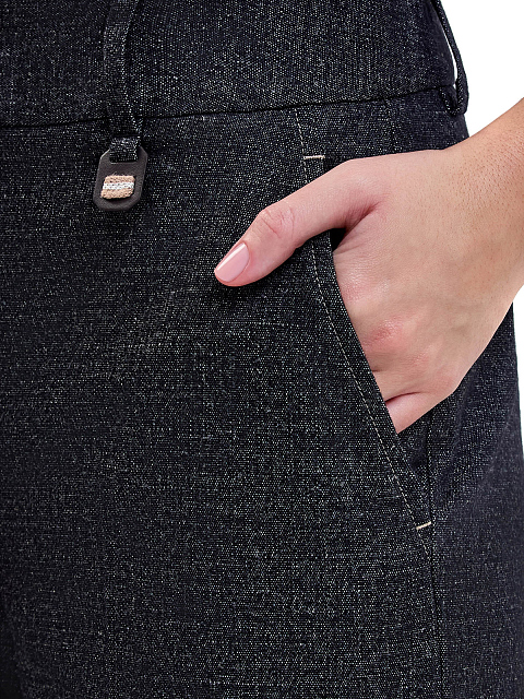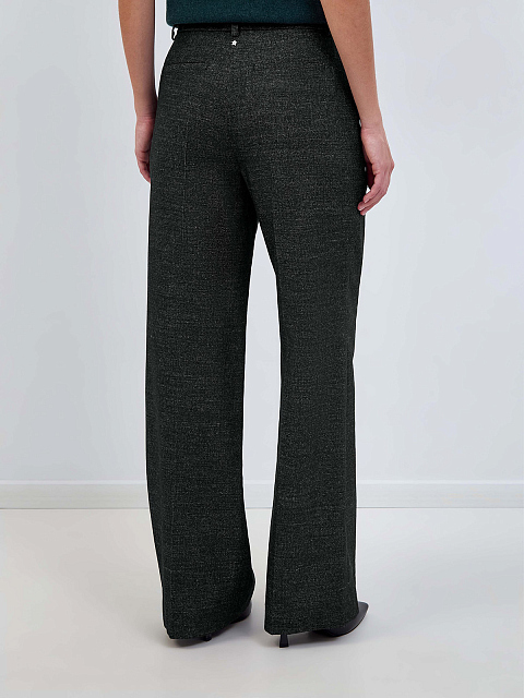 Брюки из смесовой шерсти со стрелками и кожаной деталью