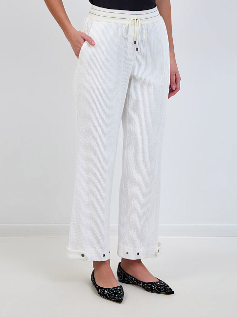 Брюки из фактурного хлопка с эластичным поясом на кулиске