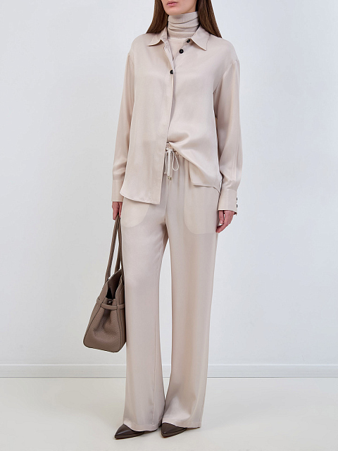 Свободные брюки из шелка и ацетата с поясом на кулиске