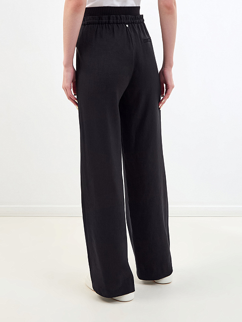 Льняные брюки с трикотажным эластичным поясом на кулиске