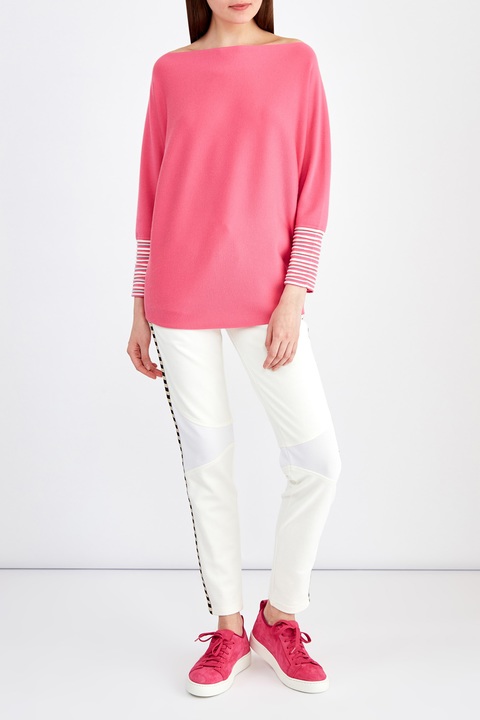 Брюки из хлопка с перфорированными вставками и лампасами в полоску