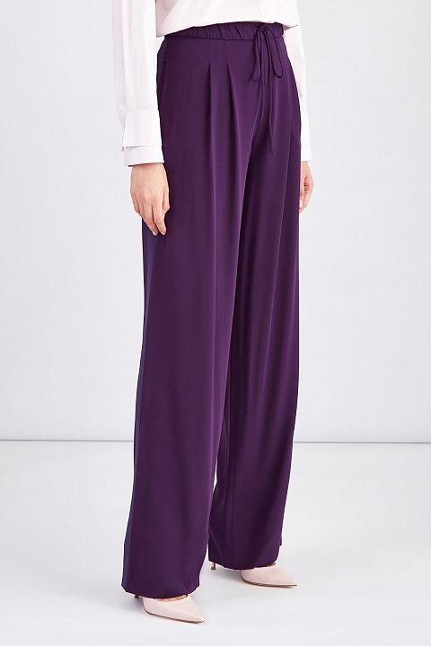 Брюки свободного кроя из нежного шелка с баклажановом оттенке