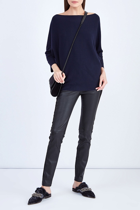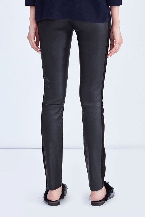 Брюки из мягкой и гибкой овечьей кожи мелкозернистой выделки в универсальном черном цвете