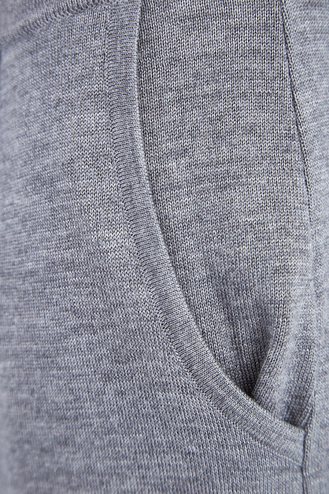 Комфортные женские брюки слегка зауженного силуэта от Maison Ullens созданы из пряжи, в состав которой входят мягкий кашемир и нежный шелк в базовом меланжево-сером оттенке. Мягкие заложенные складки создают образ в расслабленном стиле. Модель оснащена широкой эластичной резинкой с кулиской на поясе и двумя прорезными карманами. Нижние кромки закрыты объемным швом. Сделано в Италии.