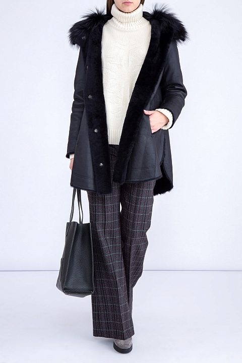 Брюки в ретро стиле расклешенного кроя из шерсти с клетчатым узором