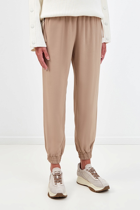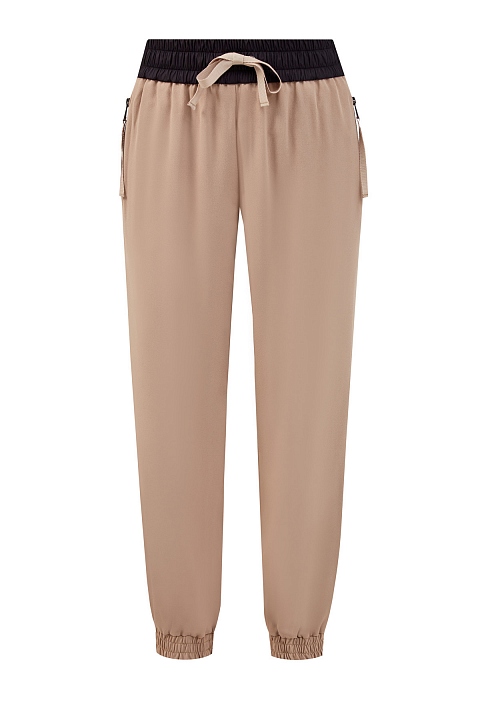 Джоггеры из крепа с лампасами из ленты грогрен