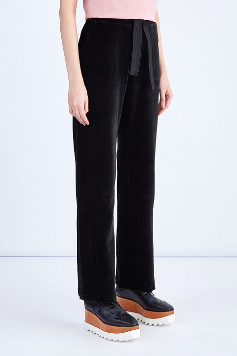 Брюки-кюлоты из бархатной ткани с разрезами по бокам и бантом на поясе