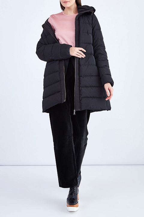 Стильные брюки-кюлоты от Moncler созданы из струящейся бархатной ткани однородного черного цвета, который подчеркивает богатую текстуру материала. Модель на притачном поясе с внутренней кулиской дополнена декоративными разрезами по внешним боковым швам с внутренней отделкой из широких лент грогрена в тон.