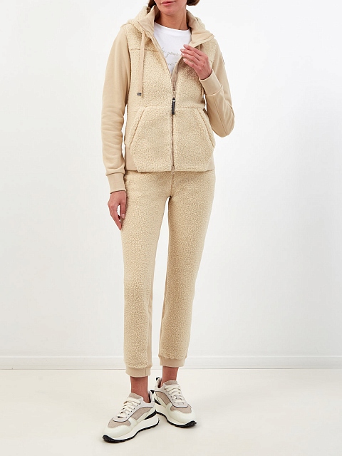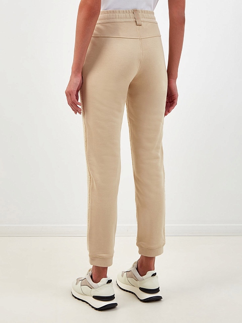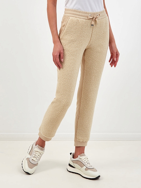 Джоггеры из хлопкового футера и фактурного букле с нашивкой