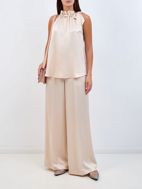 Брюки-палаццо из металлизированной ткани с поясом на кулиске