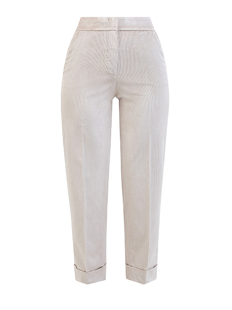 Брюки на высокой посадке из мягкого хлопкового вельвета от Peserico. Элегантная модель создана в кремовом оттенке и дополнена легкими заложенными складками от линии талии. Широкий притачной пояс и свободный силуэт обеспечивают максимальный комфорт в движении. Детали: отвороты по нижнему краю, четыре кармана, застежка на молнию и крючки. Сделано в Италии.