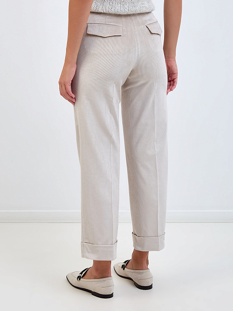 Брюки в стиле casual из хлопкового вельвета с отворотами