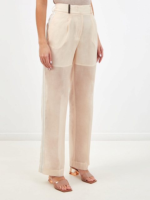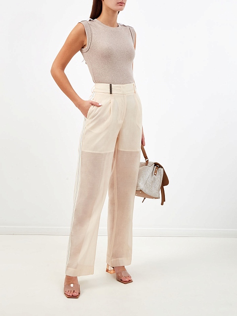 Легкие брюки из полупрозрачного хлопка и шелка с цепочками