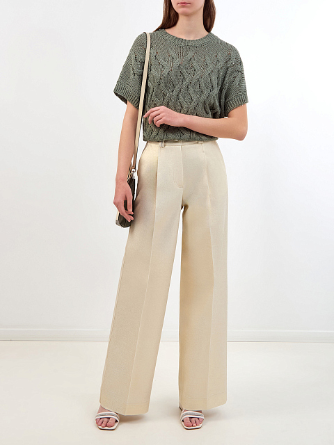 Брюки-палаццо из металлизированного хлопка с цепочками Punto Luce