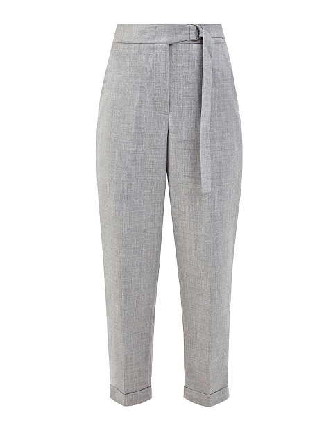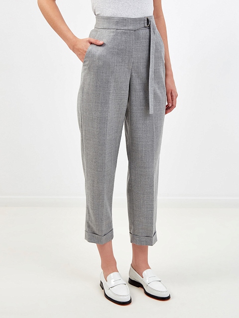 Укороченные брюки из тонкой меланжевой шерсти с поясом