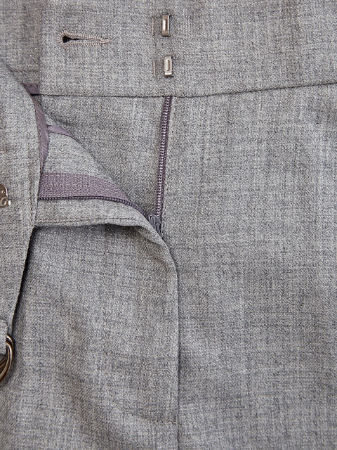 Женские брюки от Peserico из тонкой шерстяной ткани в оттенке серого меланжа. Асимметричный пояс с D-образным фиксатором формирует приталенный силуэт, укороченный крой с отворотами идеально подходит для создания повседневных и нестрогих деловых образов. Детали: прорезные карманы, потайная застежка на молнию и крючки.