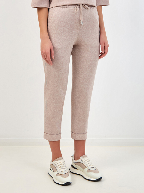 Укороченные брюки из меланжевого хлопка с цепочками