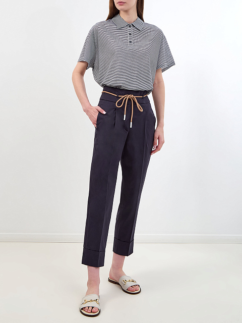 Хлопковые брюки с фактурными защипами и съемным поясом