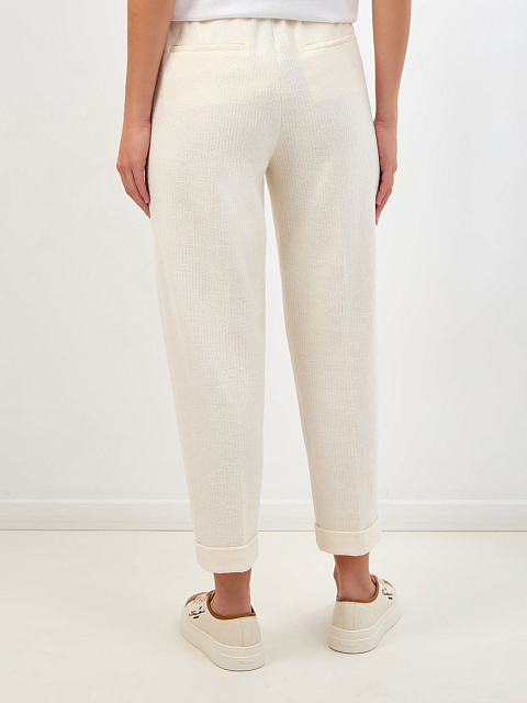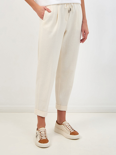Брюки из хлопка и льна с отворотами и поясом на кулиске