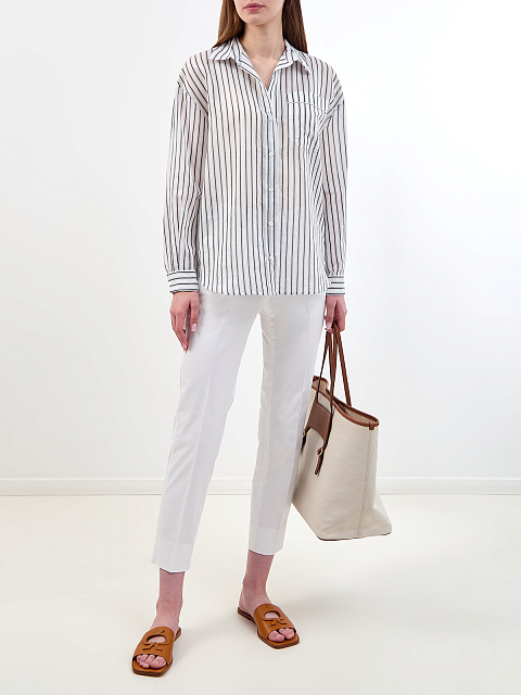 Хлопковые брюки укороченного кроя с кожаной шлевкой