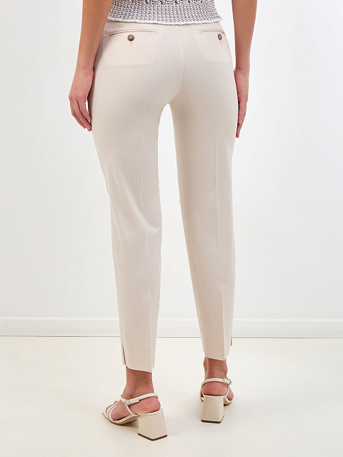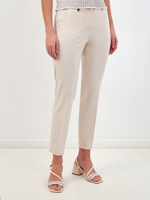 Укороченные брюки из гладкого хлопка с кожаной деталью