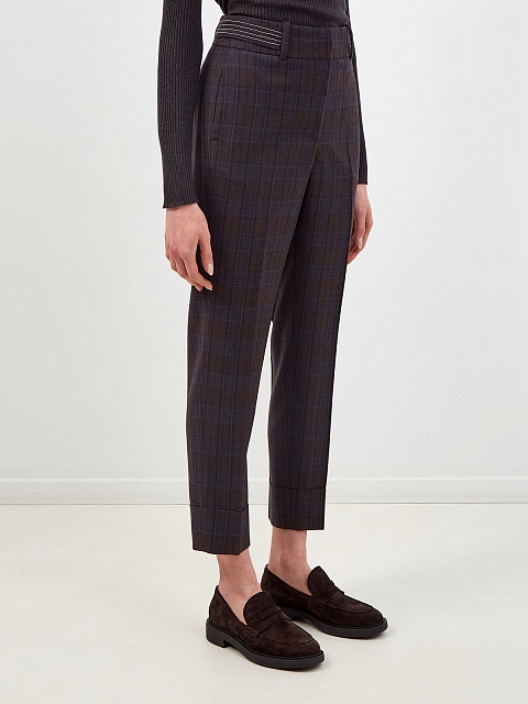 Брюки из шерстяной фланели Estrato с цепочками Punto Luce и отворотами