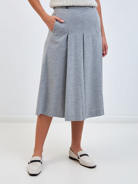 Расклешенные кюлоты из тонкой шерстяной ткани с кожаной деталью