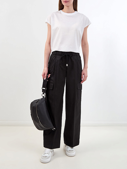 Брюки с карманами в стиле карго и эластичным поясом на кулиске