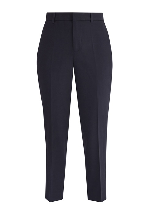 Укороченные классические брюки от Polo Ralph Lauren, сшитые из шерсти черного цвета с добавлением эластичных волокон для лучшей посадки. Модель с завышенной посадкой на талии на притачном поясе с застежкой на молнию и пуговицу. Объемный верх изделия уравновешивается слегка зауженным к кромкам кроем брючин.