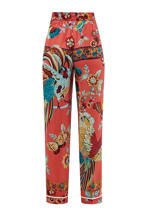 Брюки из шелкового крепдешина с фирменным принтом Bird of Paradise