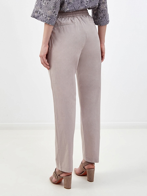 Минималистичные брюки от Re Vera созданы из дышащей хлопковой ткани. Однотонное исполнение и лаконичный дизайн делают модель универсальным дополнением расслабленных образов. Эластичный пояс на регулируемой кулиске обеспечивает комфортную посадку по фигуре, вышивка ювелирными цепочками на задних карманах придает изделию изысканный штрих.