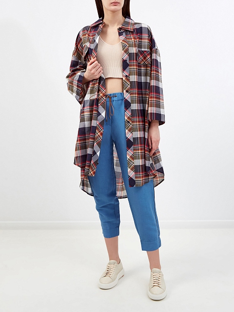 Укороченные брюки из шелка и льна с ювелирными цепочками