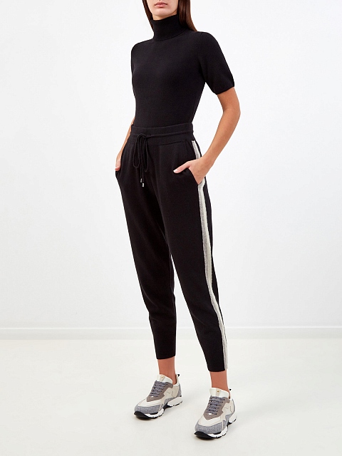 Джоггеры из мягкого кашемира с контрастными лампасами