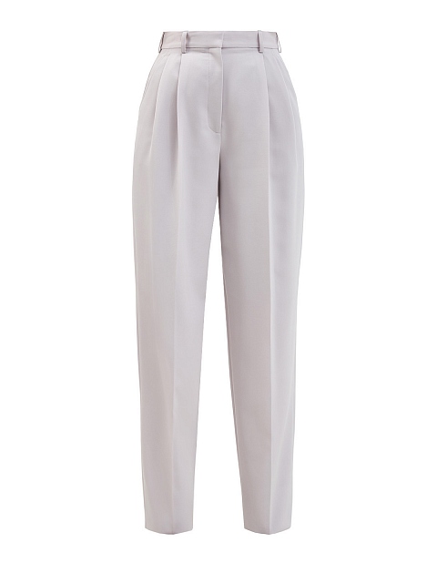 Брюки-палаццо удлиненного кроя от Stella McCartney полностью выполнены из натуральной шерсти. Модель Lara в бледно-лавандовом оттенке станет идеальной основой для создания деловых и повседневных образов. Заложенные складки от линии талии визуально вытягивают силуэт. Детали: прорезные карманы, застежка на потайную молнию и крючок, вытачки для посадки по фигуре.