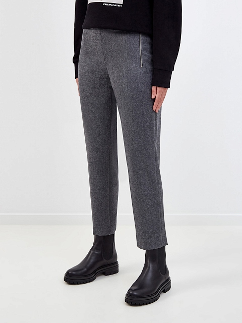 Элегантные женские брюки ручной работы от Stella McCartney полностью выполнены из натуральной шерсти. Модель Claire в лаконичном сером цвете с легким меланжевым эффектом станет идеальной основой для создания деловых и повседневных образов. Эластичная отделка пояса на спинке изделия обеспечивает посадку по фигуре. Детали: прорезные карманы на боковых планках, застежка на потайную молнию и крючок, классический крой.