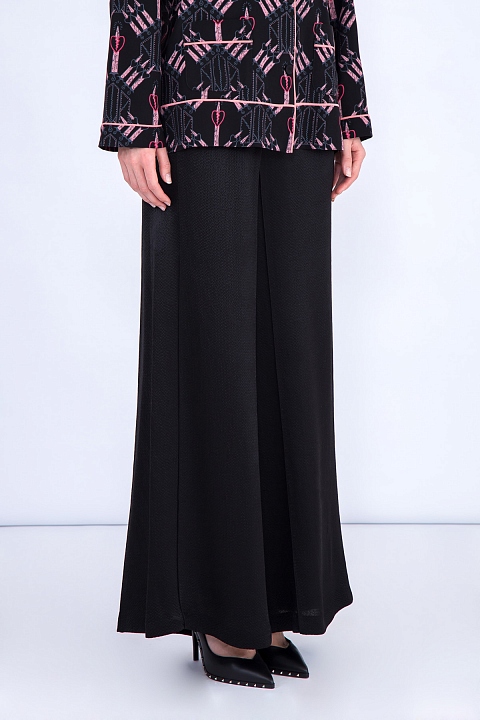 Брюки на высокой посадке из тисненой шелковой ткани