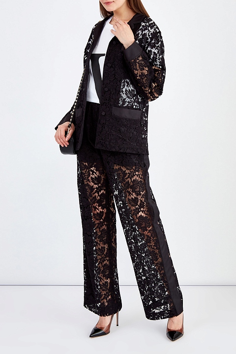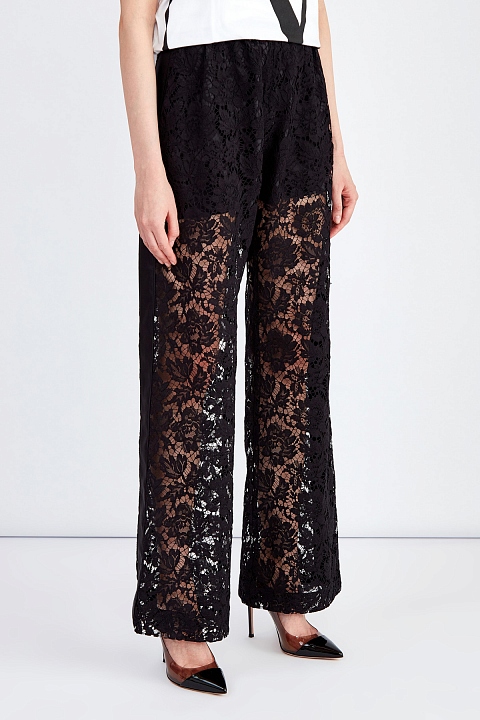 Брюки из кружева Heavy Lace с лампасами и поясом из атласного шелка