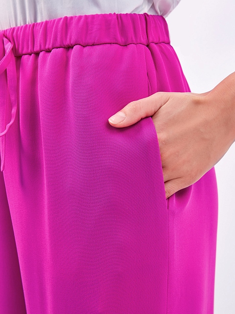 Яркие брюки-палаццо из струящейся шелковой ткани
