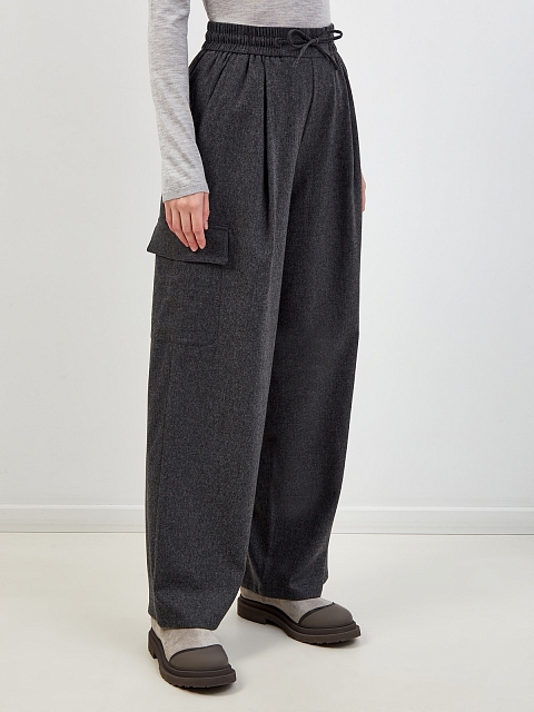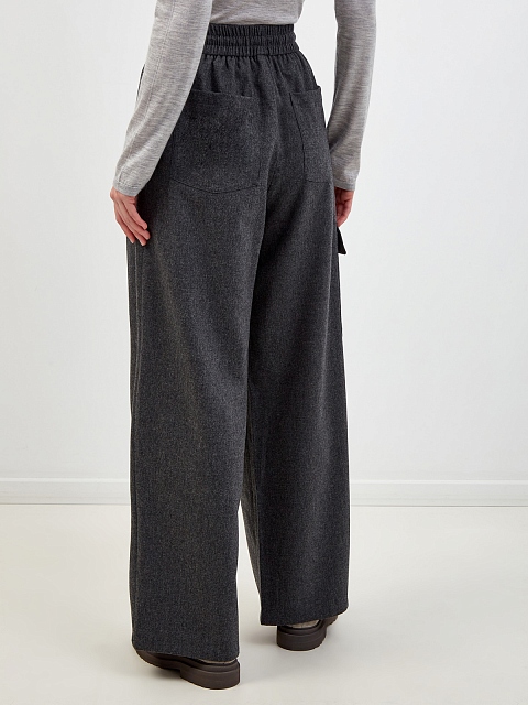 Широкие брюки-карго из шерстяной и кашемировой фланели