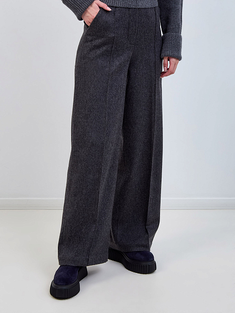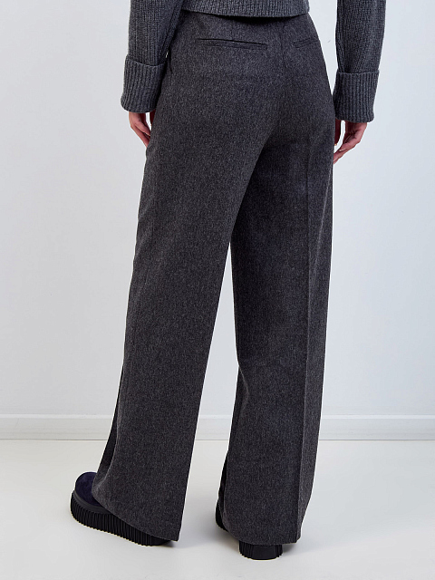 Брюки из шерстяной фланели с итальянскими карманами и защипами